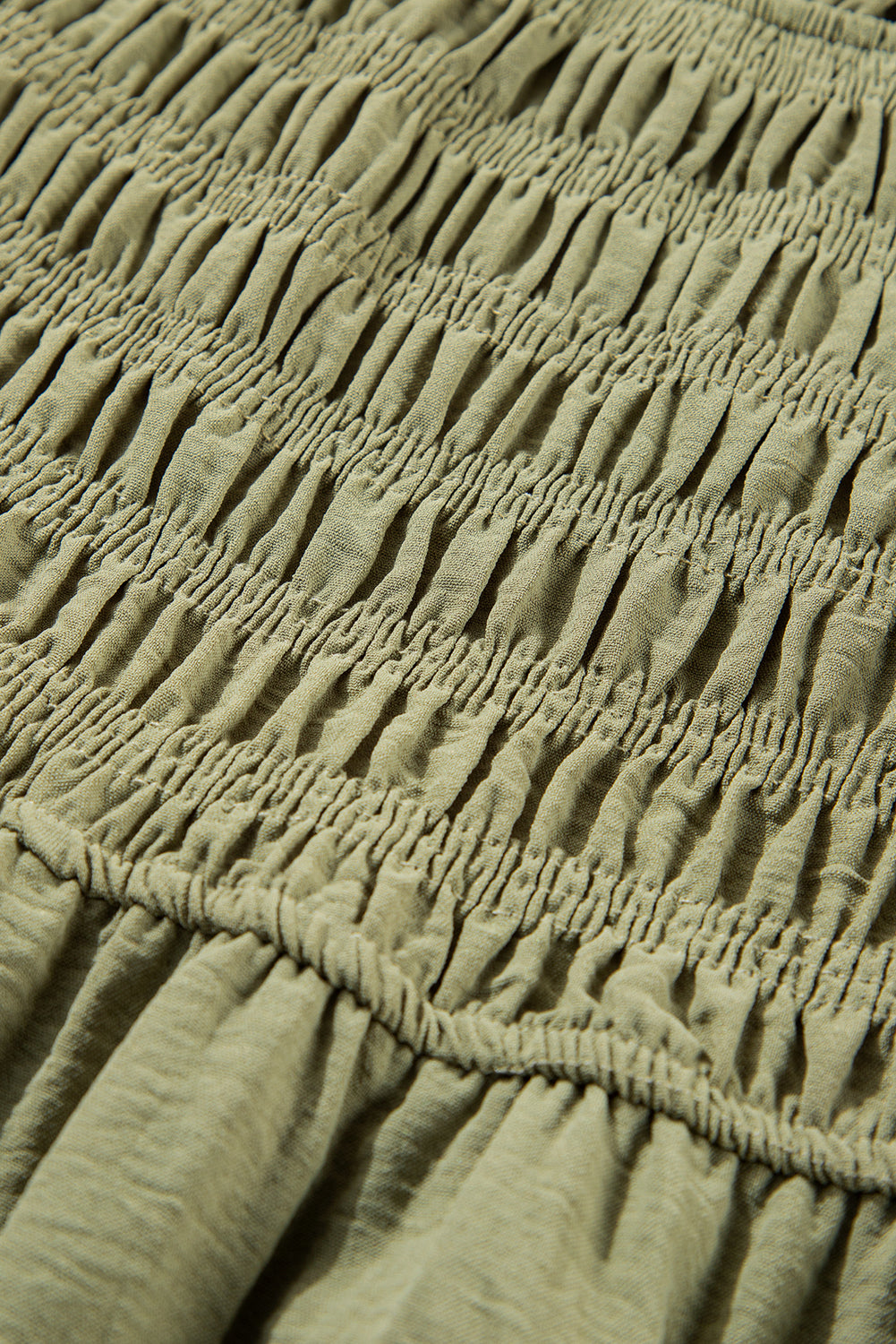 Grass Green Frilly Square Neck Flutter Sleeve Smocked High Waist Plus Size Dress