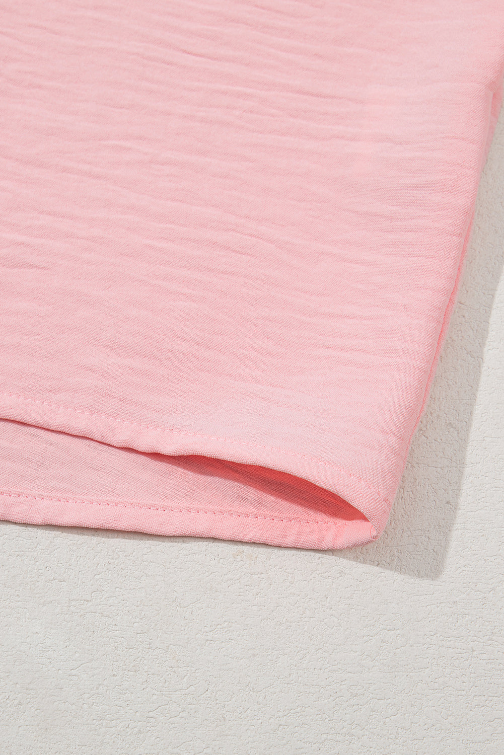Pink Textured Half Sleeve V Neck Plus Size T Shirt with Chest Pocket