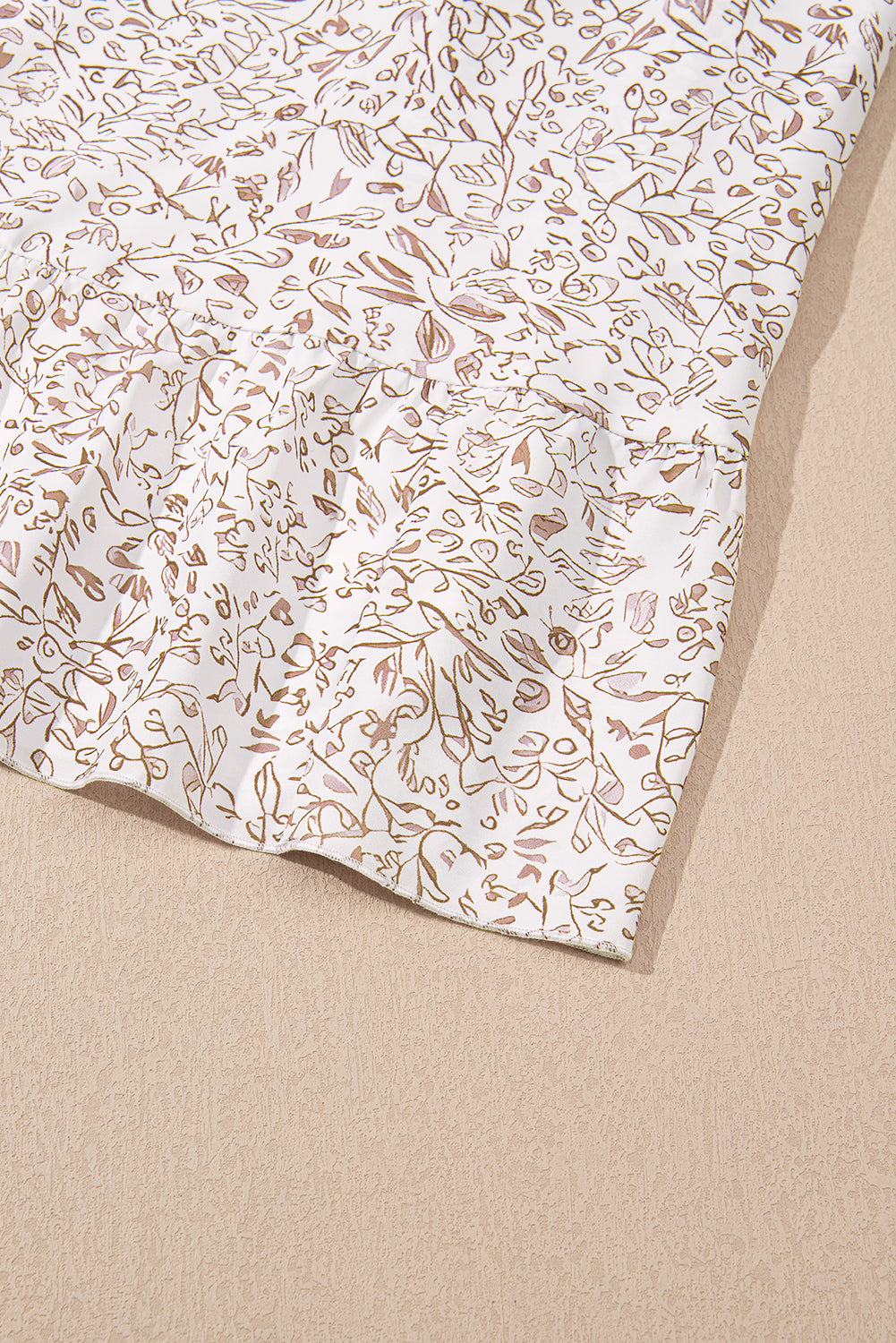 White Floral V Neck Ruffled Short Sleeve Plus Size Dress